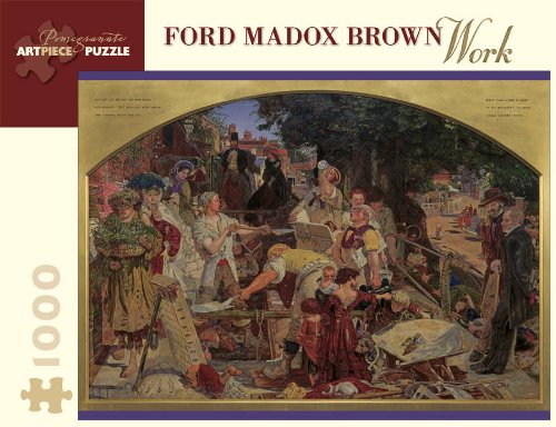 Editorial Review Product Description Known for his meticulous craftsmanship and use of brilliant color, Ford Madox Brown (English, b. France, 1821-1893) studied with noted Belgian painter Egide Charles Gustave Wappers. A close associate of the Pre-Raphaelite painters, he also cofounded William Morris's decorative arts company, for which he designed stained glass and furniture. Work, Brown's most celebrated painting, is a Victorian social commentary on the importance of work. Brown is said to have been inspired by the sight of laborers installing drains, as depicted in the center of the painting. At left are an impoverished flower seller and a woman doing religious work (distributing tracts). At right are two of society's 'brainworkers,' F. D. Maurice, founder of the Working Men s College, and essayist Thomas Carlyle, whose work influenced Brown. Note the copy of The Times under one laborer's arm and, in the foreground, the Masonic symbols of trowel and set-square, representing education and advancement in one's trade, the keys to prosperity. Thoughtfully conceived and engagingly intricate, Pomegranate's 1,000-piece interlocking jigsaw puzzles combine superb color reproduction, stunning and unusual images, and sturdy construction to delight generations of novice and veteran puzzleworkers. Puzzle size: 27 x 20 inches. Box size: 10 x 13 x 1 7/8 inches. | |