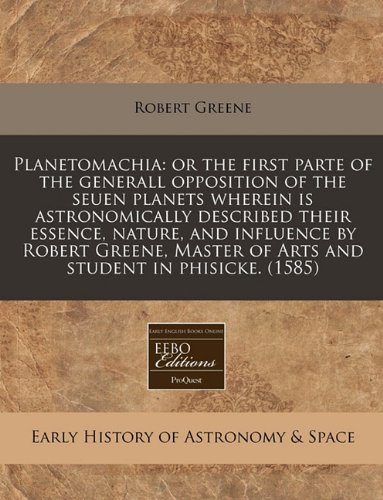 | 44. Planetomachia: or the first parte of the generall opposition of the seuen planets wherein is astronomically described their essence, nature, and influence ... of Arts and student in phisicke.(1585) by Robert Greene | |