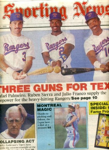 | 7. Sporting News July 31 1989 Rafael Palmeiro & Ruben Sierra & Julio Franco/Texas Rangers Cover, Sparky Anderson/Detroit Tigers, Montreal Expos, 50th Annual Baseball Hall of Fame Program Insert | |