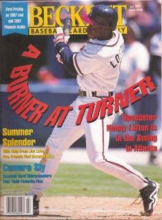 | 4. BECKETT BASEBALL CARD MONTHLY - July 1997 Issue #148 (Your Guide to the coolest hobby on the planet. A burner at turner. Speedster Kenny Lofton is in the swing in Atlanta. Larry Walker is on back cover.) | |