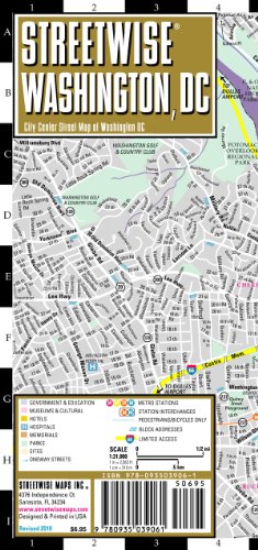 Editorial Review Product Description This map covers the following areas: Yes, Washington D.C. is home to streets and avenues of Greco-Roman inspired architecture, unrivaled (and free) museums and, of course, unique monuments, but it is the political presence you feel the most. This is the Superbowl stadium for every past or present player in the game of politics. The Mall serves as center field, with Lincoln, Jefferson, the WWII and Vietnam Memorials on one end, reminding us of the past battles this city has seen, and Congress, confronting current issues, looming at the other end. In between, the White House stands ready to take the field while the Supreme Court sits back waiting to settle the inevitable skirmishes that arise. Surrounding them are the supporting players, the Treasury, The Library of Congress and all the various Departments that run every feasible aspect of public life. Meanwhile, Washington Cathedral stands ready to console the battered and bereaved. All of this is clearly laid out for you on our STREETWISE® Washington DC Street Map. Sites, whether political or not, are listed as well as hotels, transportation and parks. A separate inset of the Mall details each site. You can find relief from the political playoffs by getting outside of the city and into the bucolic region of the Mid-Atlantic, as seen on the Washington DC Area map. Our pocket size map of Washington D.C. is laminated for durability and accordion folding for effortless use. The STREETWISE® Washington D.C. map is one of many detailed and easy-to-read city street maps designed and published by STREETWISE®. Buy your STREETWISE® Washington D.C. map today and you too can navigate DC like a native. For a larger selection of our detailed travel maps simply type STREETWISE MAPS into the Amazon search bar. Customer Reviews (28)