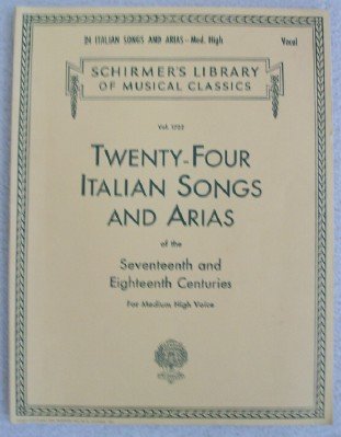 | 17. 24 ITALIAN SONGS AND ARIAS -- MED.HIGH VOCAL SCHIRMER'S LIBRARY OF MUSICAL CLASSICS VOL.1722 TWENTY-FOUR ITALIAN SONGS AND ARIAS OF THE SEVENTEENTH AND EIGHTEENTH CENTURIES FOR MEDIUM HIGH VOICE. by GIOVANNIBATTISTABONONCINI, GIULIOCACCINI | |