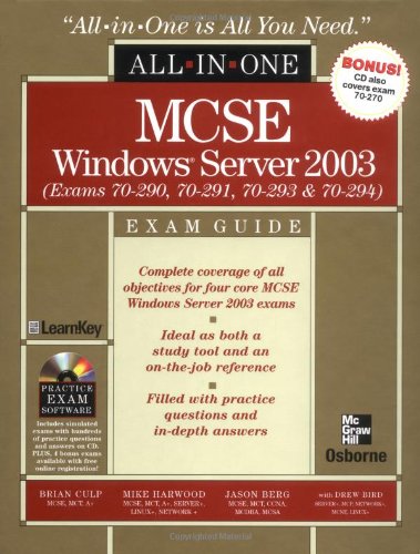 | 54. MCSE Windows Server 2003 All-in-One Exam Guide (Exams 70-290, 70-291, 70-293 & 70-294) by Brian Culp, Mike Harwood, Jason Berg, Drew Bird | |