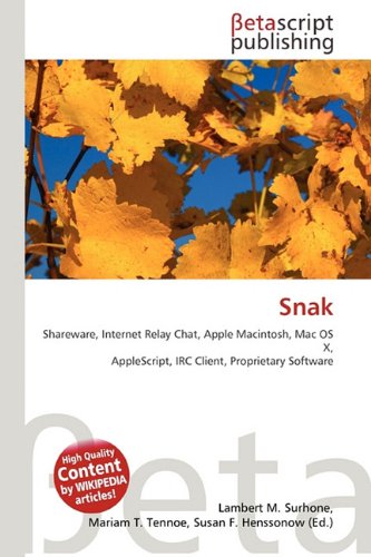 High Quality Content by WIKIPEDIA articles! Snak supports an unlimited number of connections and channels, private chats, as well as full DCC support for file transfers and chat. It can be scripted with AppleScript and the ircII scripting language. Snak features an Actions list which makes it easy to automate responses to many common events on IRC.Snak includes the ability for multiple panels to share the windows. A panel can contain a channel, a dialog with another user, a list, or information about a DCC file transfer. This results in an effective use of the screen space and improves the ability to follow multiple channels. A panel can be moved from one window to another by dragging the title bar or the panel tab. ... Read more