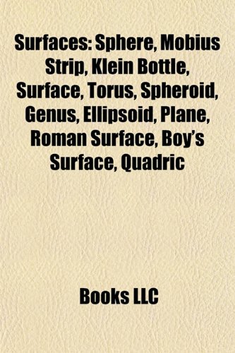 | 8. Surfaces: Sphere, Möbius strip, Klein bottle, Surface, Torus, Spheroid, Genus, Ellipsoid, Plane, Roman surface, Boy's surface, Quadric | |
