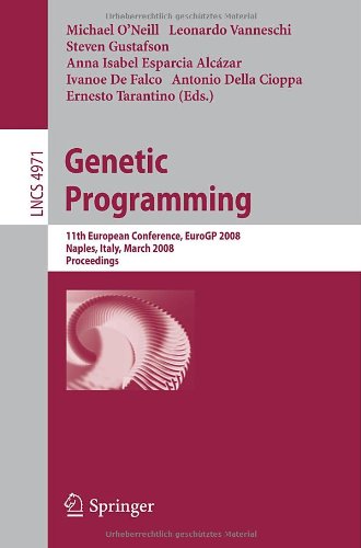 Editorial Review Product Description This book constitutes the refereed proceedings of the 11th European Conference on Genetic Programming, EuroGP 2008, held in Naples, Italy, in March 2008 colocated with EvoCOP 2008. The 21 revised plenary papers and 10 revised poster papers were carefully reviewed and selected from a total of 61 submissions. A great variety of topics are presented reflecting the current state of research in the field of genetic programming, including the latest work on representations, theory, operators and analysis, evolvable hardware, agents and numerous applications. | |