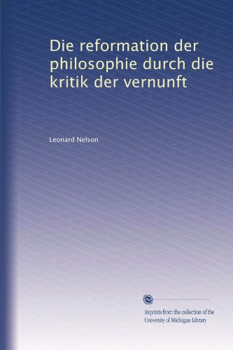 | 82. Die reformation der philosophie durch die kritik der vernunft (German Edition) by Leonard Nelson | |