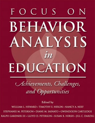 | 17. Focus on Behavior Analysis in Education: Achievements, Challenges, & Opportunities by William L. Heward, Timothy E. Heron, Nancy A. Neef, Stephanie M. Peterson, Diane M. Sainato, Gwendolyn Y. Cartledge, Ralph Gardner, Lloyd D. Peterson, Susan B. Hersh, Jill C. Dardig | |