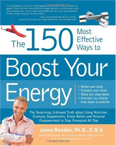 Editorial Review Product Description The 150 Most Effective Ways to Boost Your Energy shows anyone how to get more energy out of their body—naturally. Nationally known health expert Jonny Bowden presents small changes anyone can implement up front for big energy—such as what to eat for all-day endurance, when to time a workout for the biggest brain boost, or how working with (or against) natural light cycles can make your sleep restorative or slump-inducing. Energy starts with attitude—readers will learn how to “think” like a high-energy person and use breathing techniques, meditation, and exercise to bust stress, beat fatigue, and boost stamina. Readers learn how physical factors such as toxins, eating patterns, and nutritional deficiencies can sabotage strength—and how they can be corrected with proper diet and supplements. The 150 Most Effective Ways to Boost Your Energy gives readers a complete program to go from exhausted to energized. Customer Reviews (15)