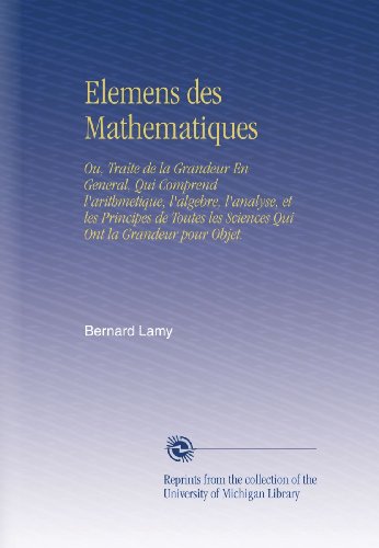 | 10. Elemens des Mathematiques: Ou, Traite de la Grandeur En General, Qui Comprend l'arithmetique, l'algebre, l'analyse, et les Principes de Toutes les Sciences Qui Ont la Grandeur pour Objet. by Bernard Lamy | |