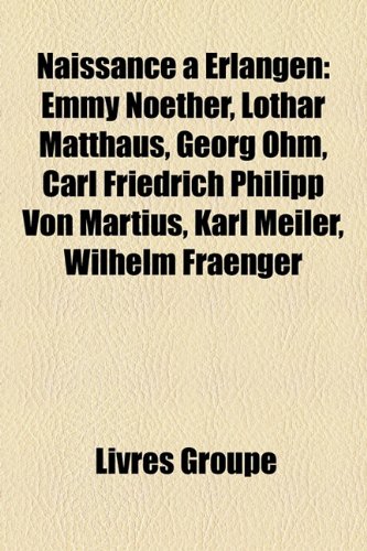 | 18. Naissance à Erlangen: Emmy Noether, Lothar Matthäus, Georg Ohm, Carl Friedrich Philipp Von Martius, Karl Meiler, Wilhelm Fraenger (French Edition) | |