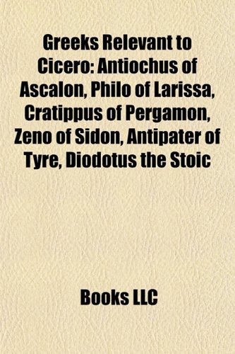 Editorial Review Product Description Chapters: Antiochus of Ascalon, Philo of Larissa, Cratippus of Pergamon, Zeno of Sidon, Antipater of Tyre, Diodotus the Stoic, Aulus Licinius Archias, Apollonius Molon, Patro the Epicurean, Menippus of Stratonikeia, Hieronymus of Rhodes, Demetrius of Magnesia, Calliphon, Hegesaratus,. Source: Wikipedia. Pages: 41. Not illustrated. Free updates online. Purchase includes a free trial membership in the publisher's book club where you can select from more than a million books without charge. Excerpt: Antiochus (Greek: ), of Ascalon, (lived c. 125-c. 68 BC), was an Academic philosopher. He was a pupil of Philo of Larissa at the Academy, but he diverged from the Academic skepticism of Philo and his predecessors. He was a teacher of Cicero, and the first of a new breed of eclectics among the Platonists; he endeavoured to bring the doctrines of the Stoics and the Peripatetics into Platonism, and stated, in opposition to Philo, that the mind could distinguish true from false. In doing so, he claimed to be reviving the doctrines of the Old Academy. With him began the phase of philosophy known as Middle Platonism. He was a friend of Lucullus (the antagonist of Mithridates) and the teacher of Cicero during his studies at Athens (79 BC); but he had a school at Alexandria also, as well as in Syria, where he seems to have died. He was a philosopher of considerable reputation in his time, for Strabo in describing Ascalon, mentions his birth there as a mark of distinction for the city, and Cicero frequently speaks of him in affectionate and respectful terms as the best and wisest of the Academics, and the most polished and acute philosopher of his age. He studied under the Stoic Mnesarchus, but his principal teacher was Philo, who succeeded Clitomachus as the head (scholarch) of the Academy. He is, however, better known as the adversary than the disciple of Philo; and Cicero mentions a treatise called Sosus, written by him against his maste...More: http://booksllc.net/?id=2332971 ... Read more |