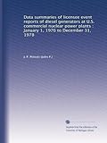 | 97. Data summaries of licensee event reports of diesel generators at U.S. commercial nuclear power plants : January 1, 1976 to December 31, 1978 by J. P. Poloski | |